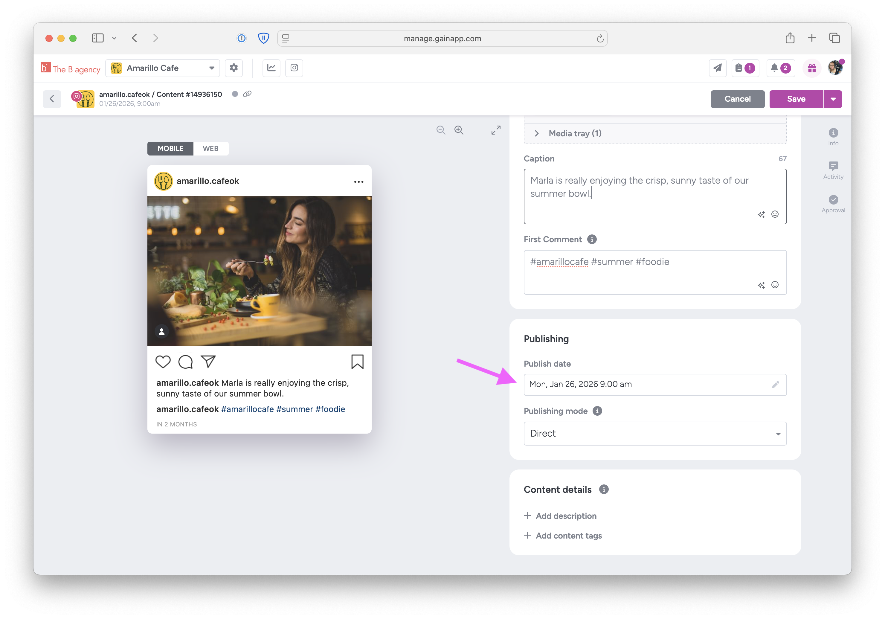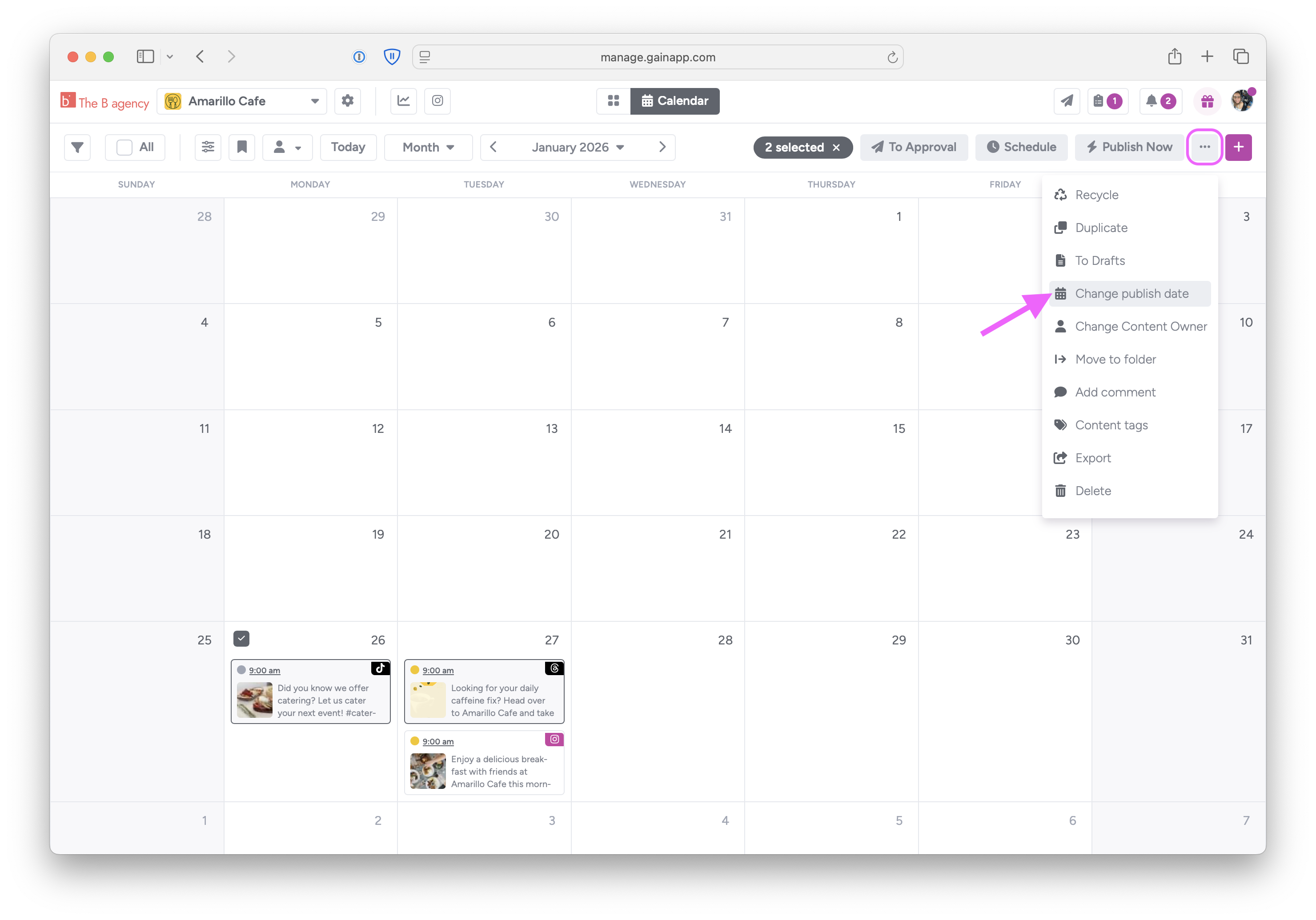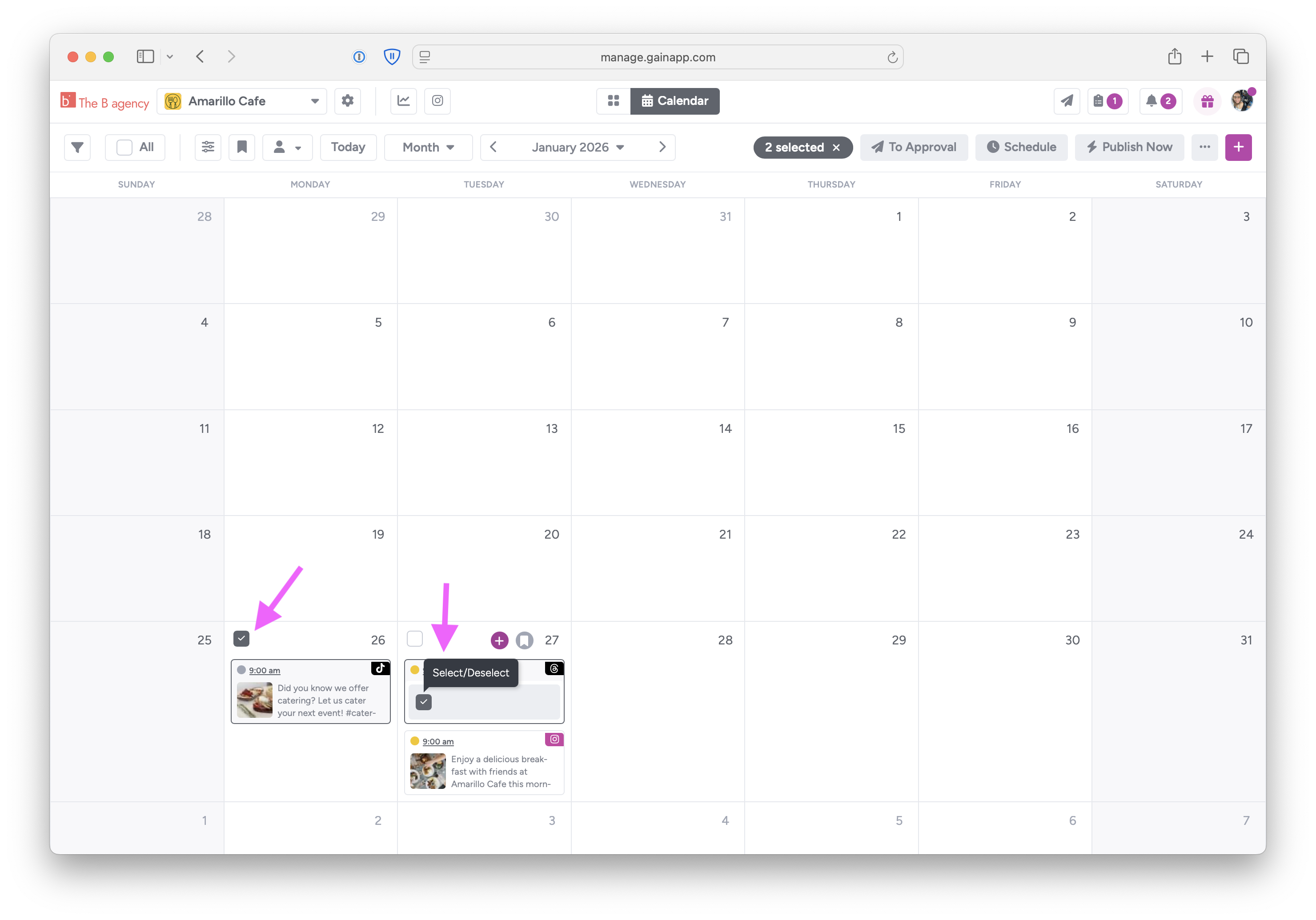 Once your content is approved, Gain auto-schedules and takes care of publishing for you. You can also schedule content by clicking on Schedule if you want to skip the approval process.