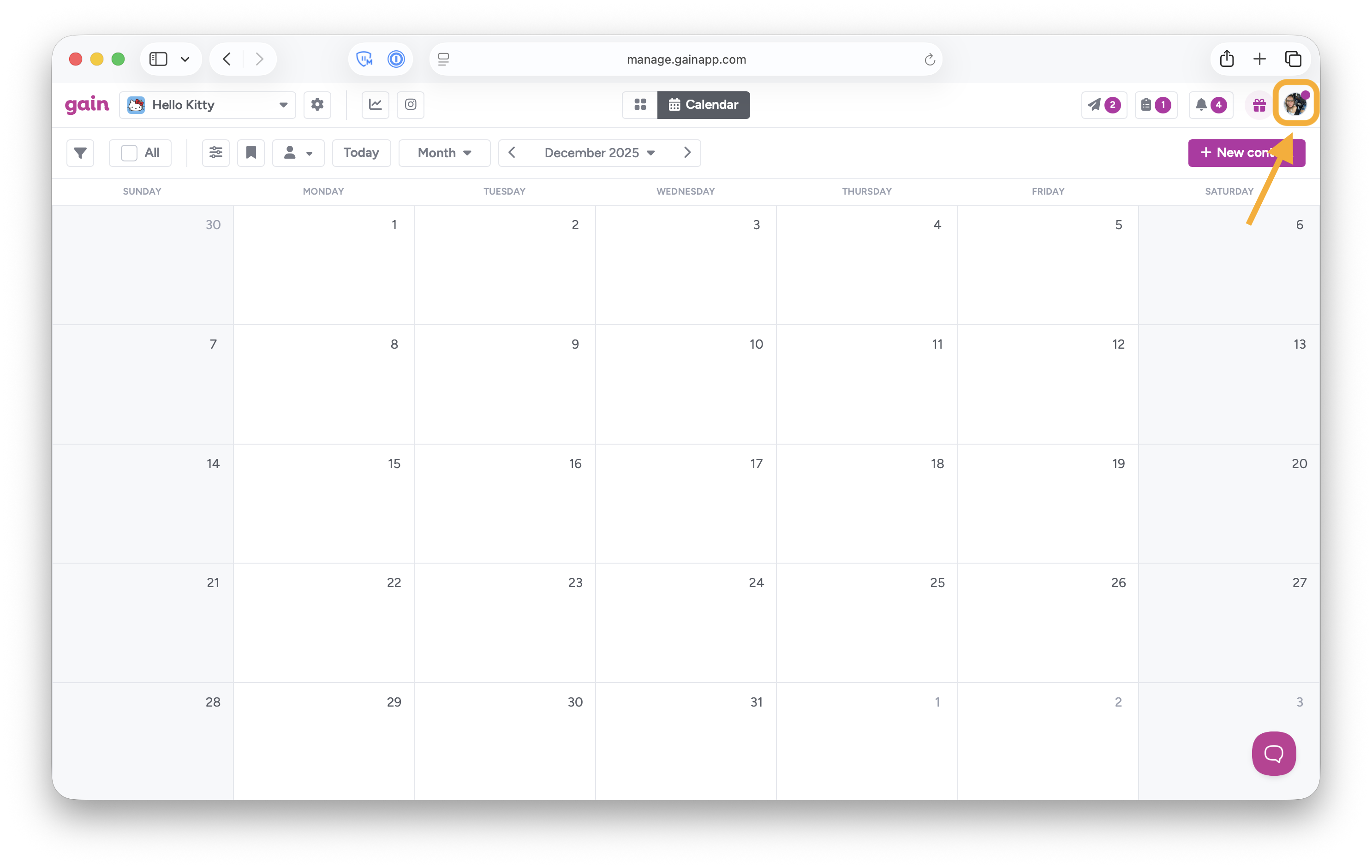 To access and edit your personal settings, click on your avatar or initials on the top right corner:
