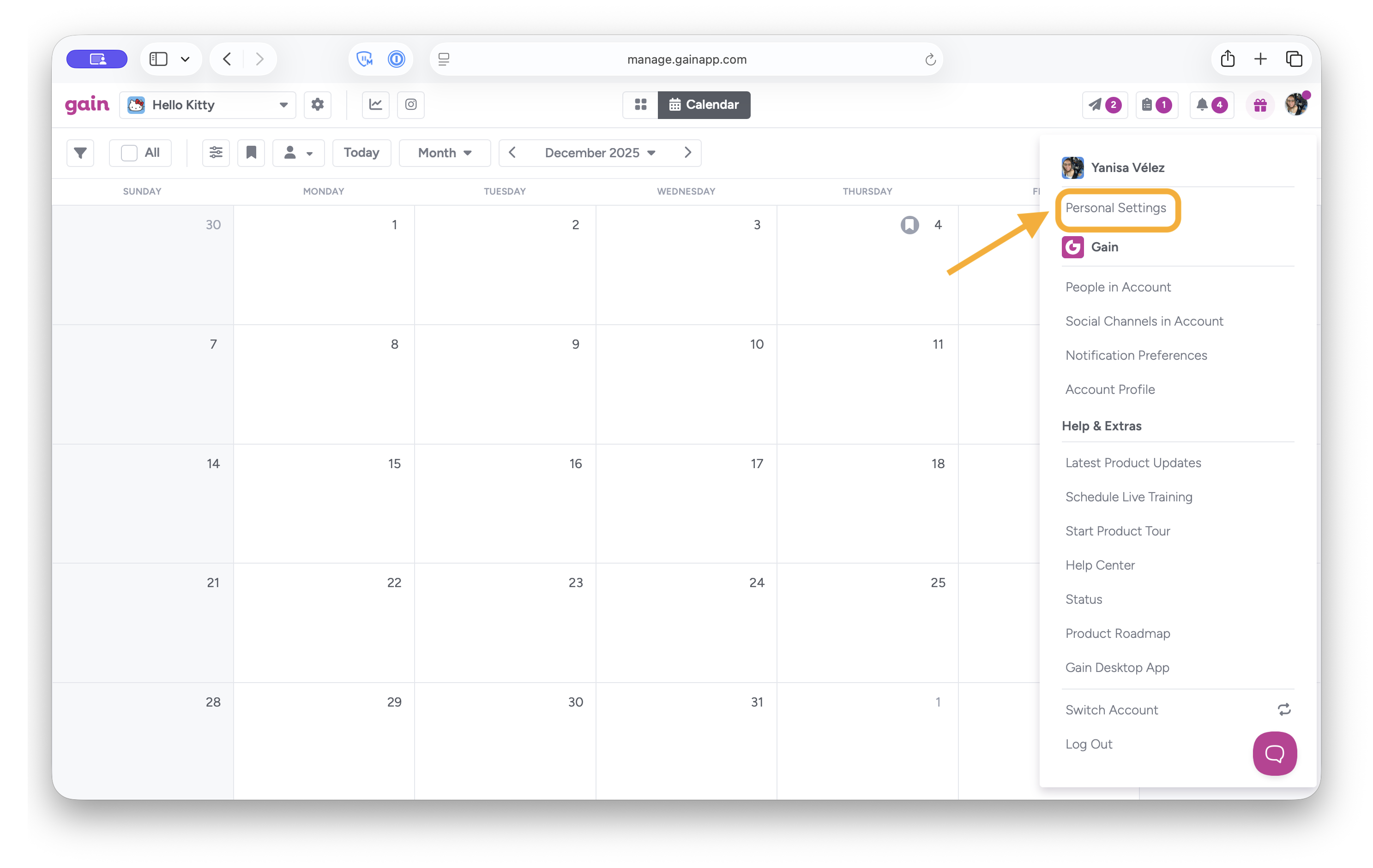 and click on Personal Settings: